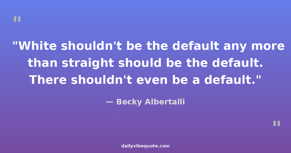 "White shouldn't be the default any more than straight should be the default. There shouldn't even be a default."