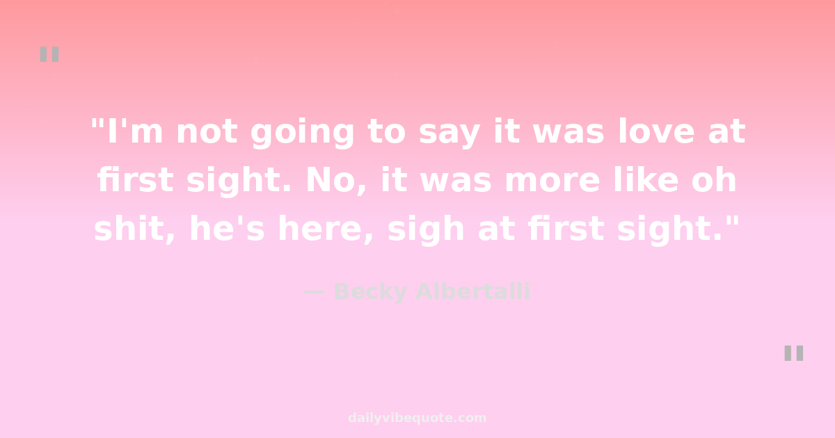 "I'm not going to say it was love at first sight. No, it was more like oh shit, he's here, sigh at first sight."