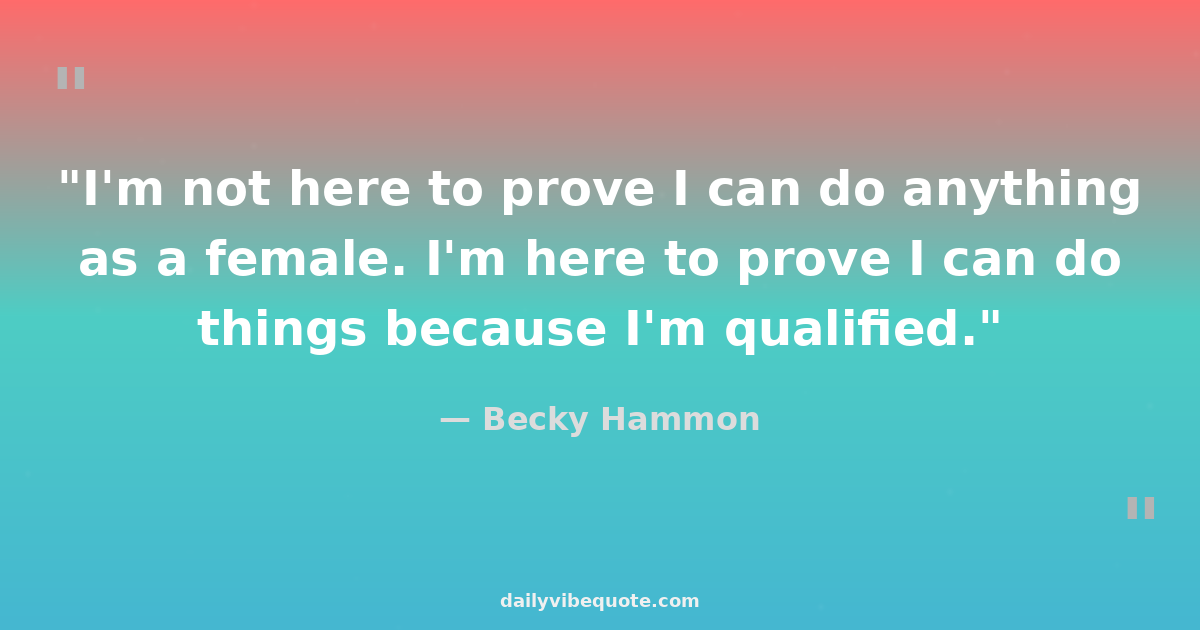 "I'm not here to prove I can do anything as a female. I'm here to prove I can do things because I'm qualified."