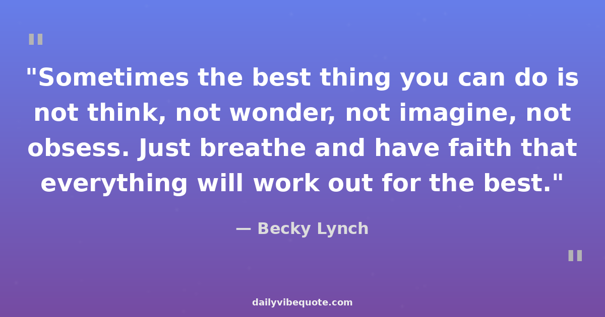 "Sometimes the best thing you can do is not think, not wonder, not imagine, not obsess. Just breathe and have faith that everything will work out for the best."