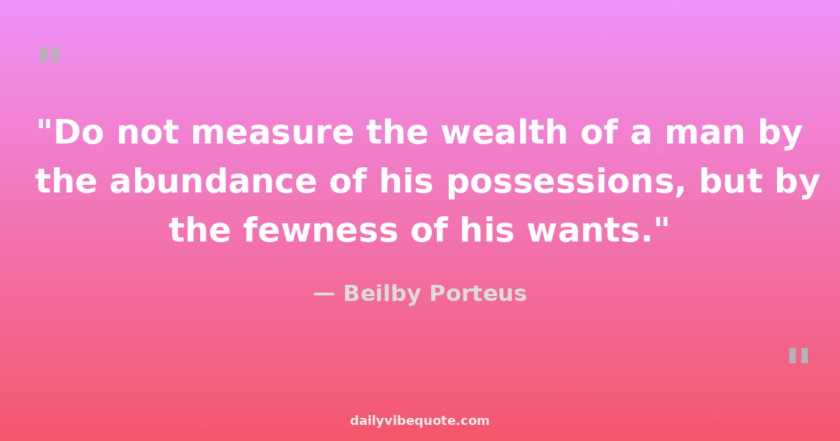 "Do not measure the wealth of a man by the abundance of his possessions, but by the fewness of his wants."