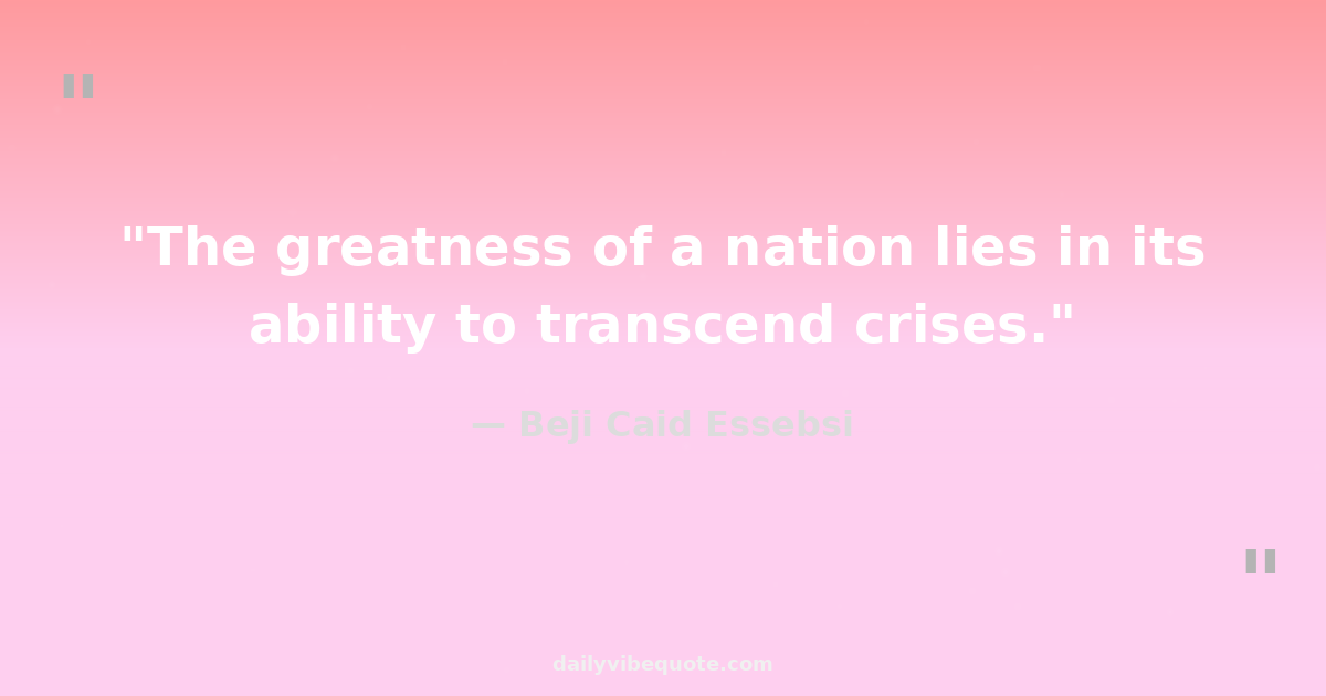 "The greatness of a nation lies in its ability to transcend crises."