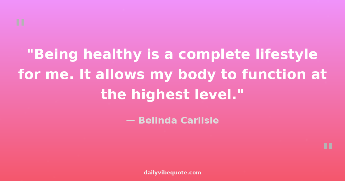 "Being healthy is a complete lifestyle for me. It allows my body to function at the highest level."