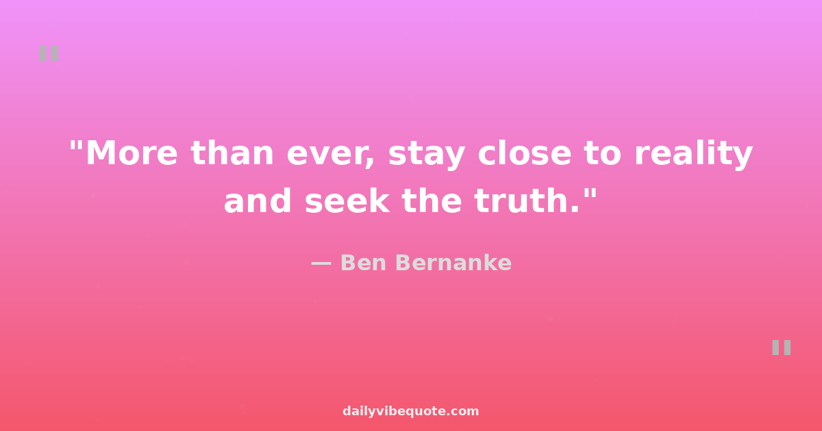 "More than ever, stay close to reality and seek the truth."