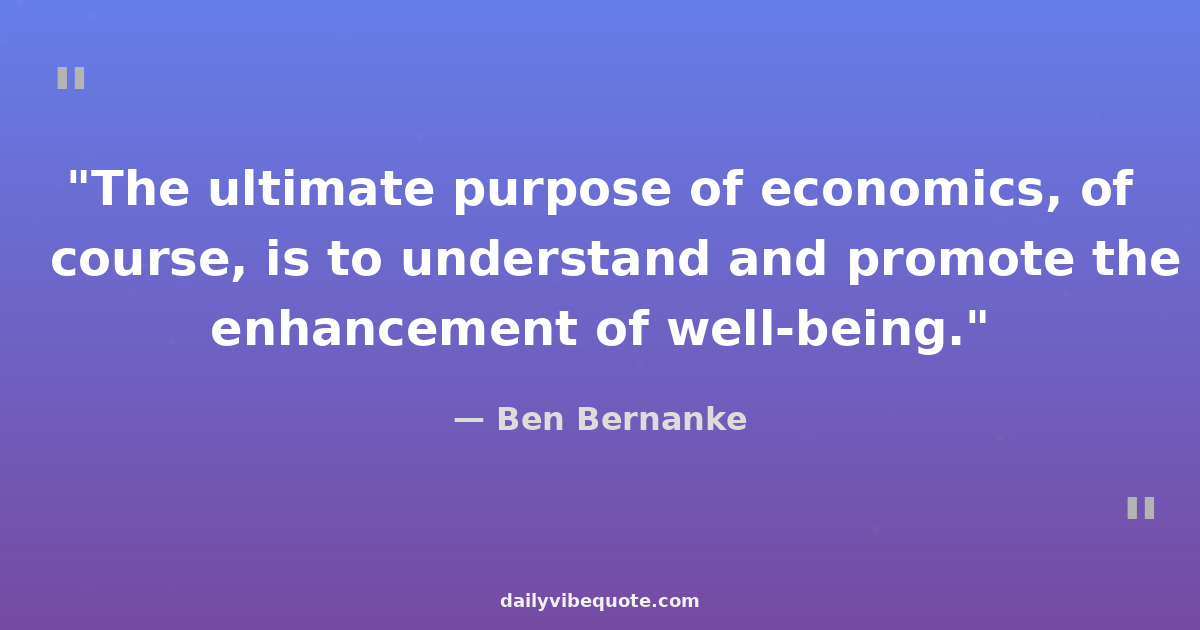 "The ultimate purpose of economics, of course, is to understand and promote the enhancement of well-being."
