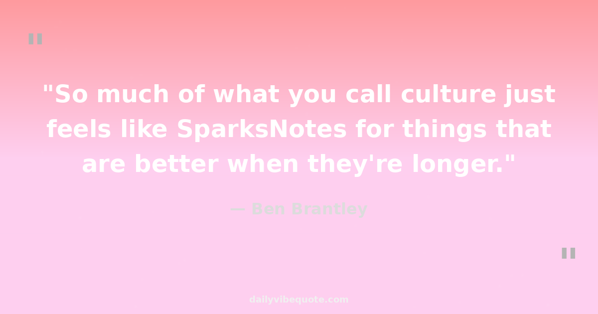 "So much of what you call culture just feels like SparksNotes for things that are better when they're longer."