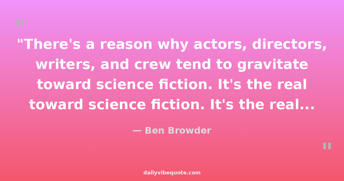 "There's a reason why actors, directors, writers, and crew tend to gravitate toward science fiction. It's the real quandaries of our time, examined through the prism of the future."