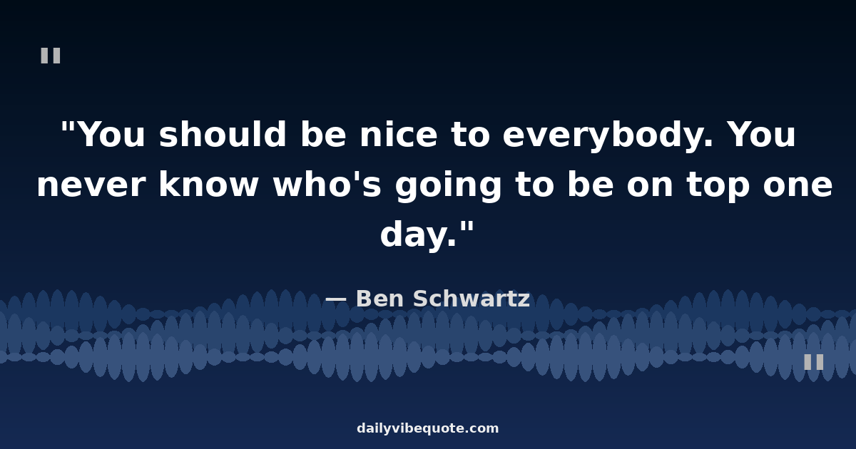 "You should be nice to everybody. You never know who's going to be on top one day."