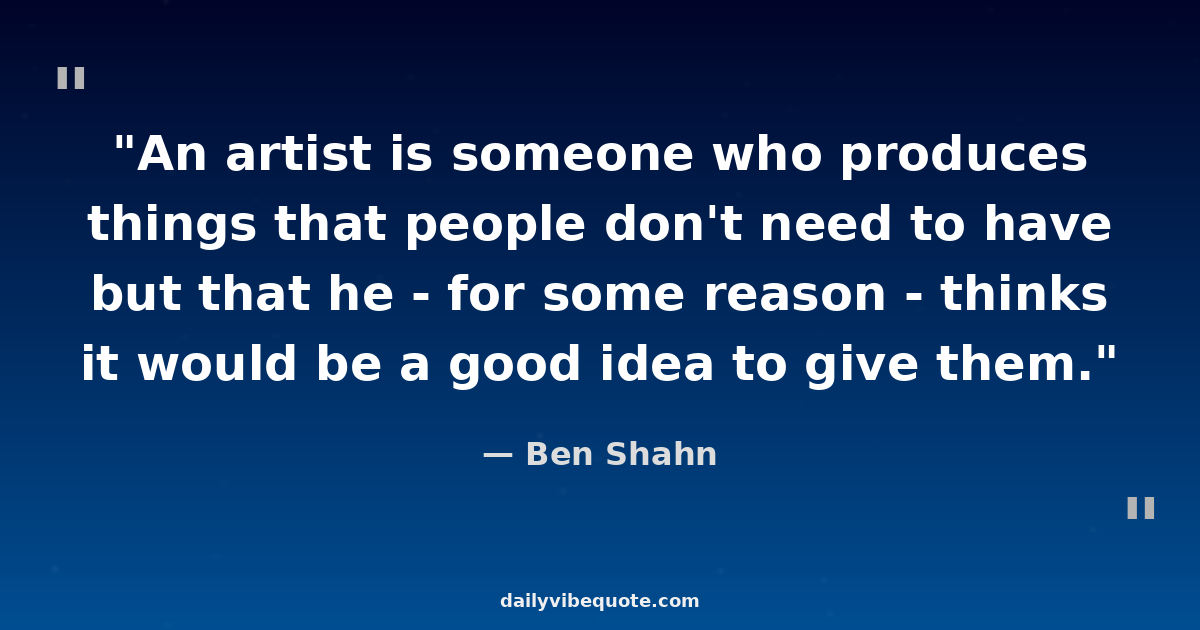 "An artist is someone who produces things that people don't need to have but that he - for some reason - thinks it would be a good idea to give them."