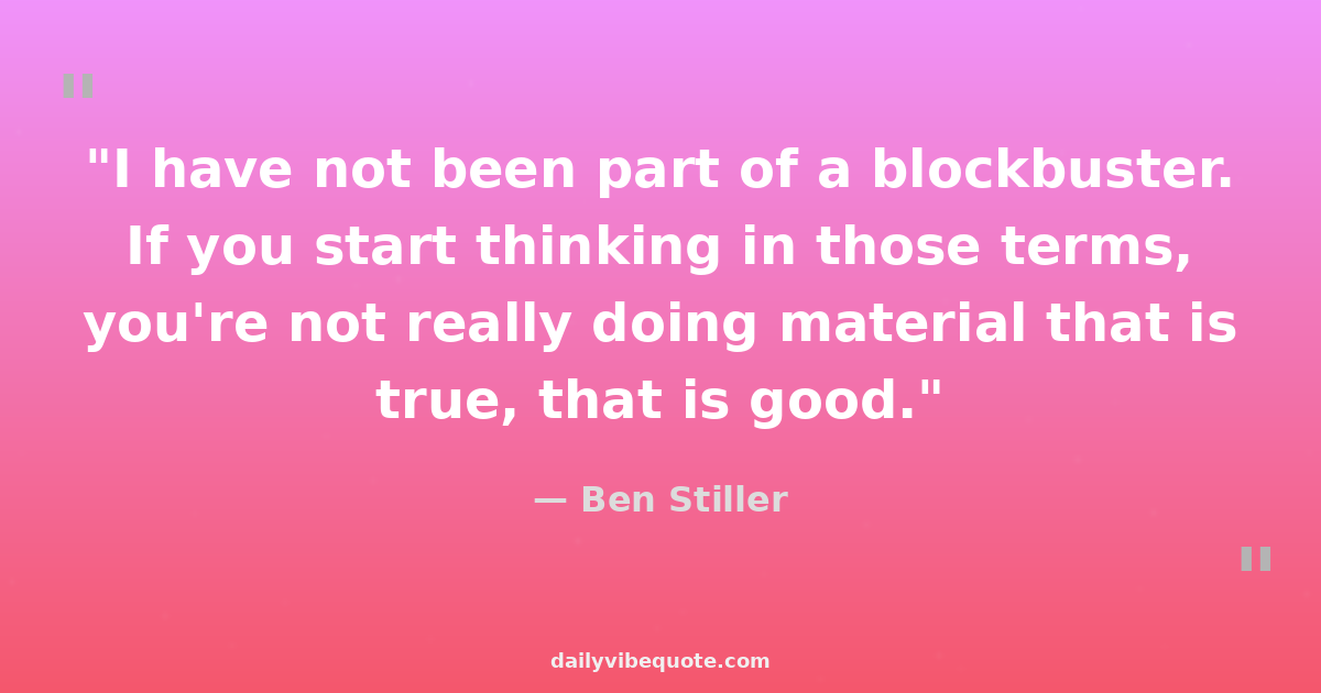 "I have not been part of a blockbuster. If you start thinking in those terms, you're not really doing material that is true, that is good."
