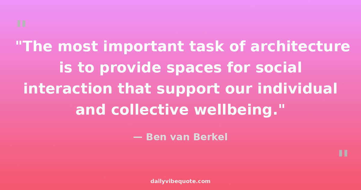 "The most important task of architecture is to provide spaces for social interaction that support our individual and collective wellbeing."