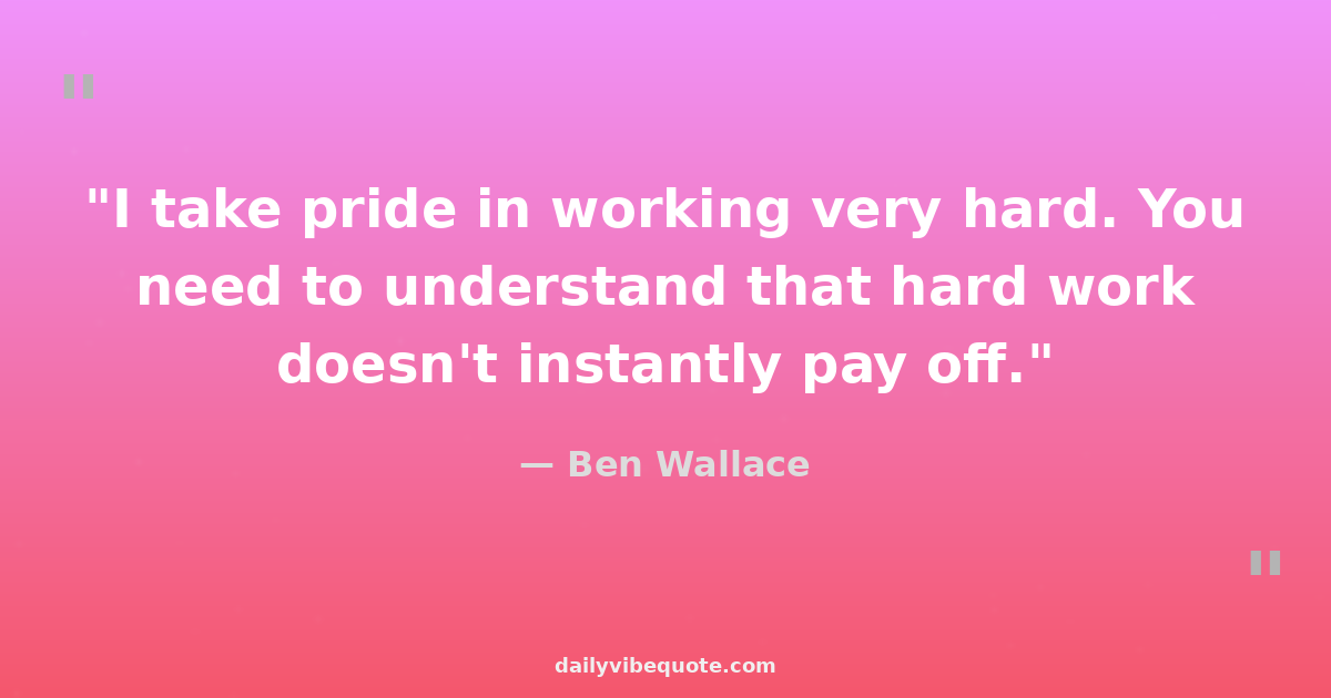 "I take pride in working very hard. You need to understand that hard work doesn't instantly pay off."
