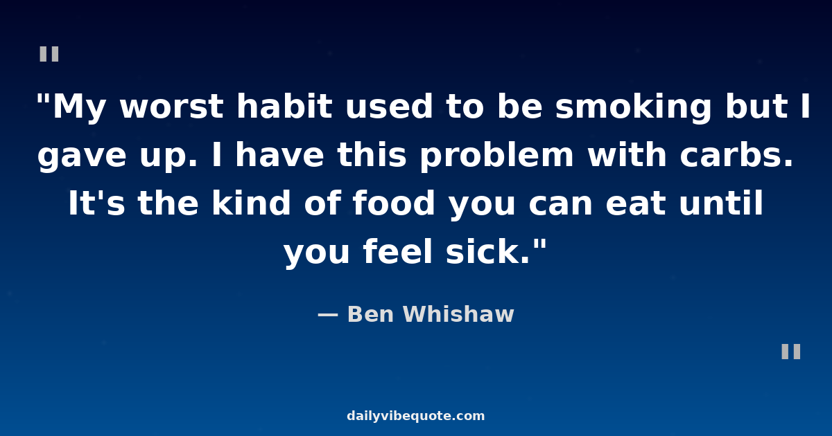 "My worst habit used to be smoking but I gave up. I have this problem with carbs. It's the kind of food you can eat until you feel sick."