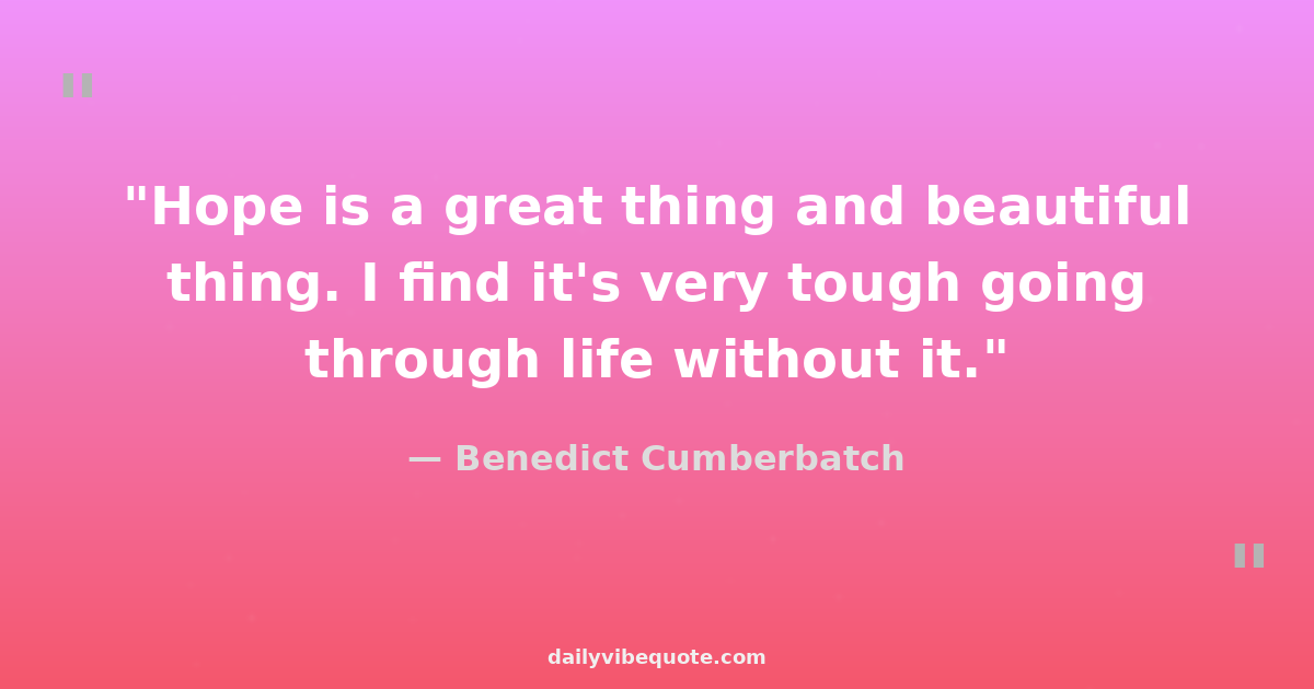 "Hope is a great thing and beautiful thing. I find it's very tough going through life without it."
