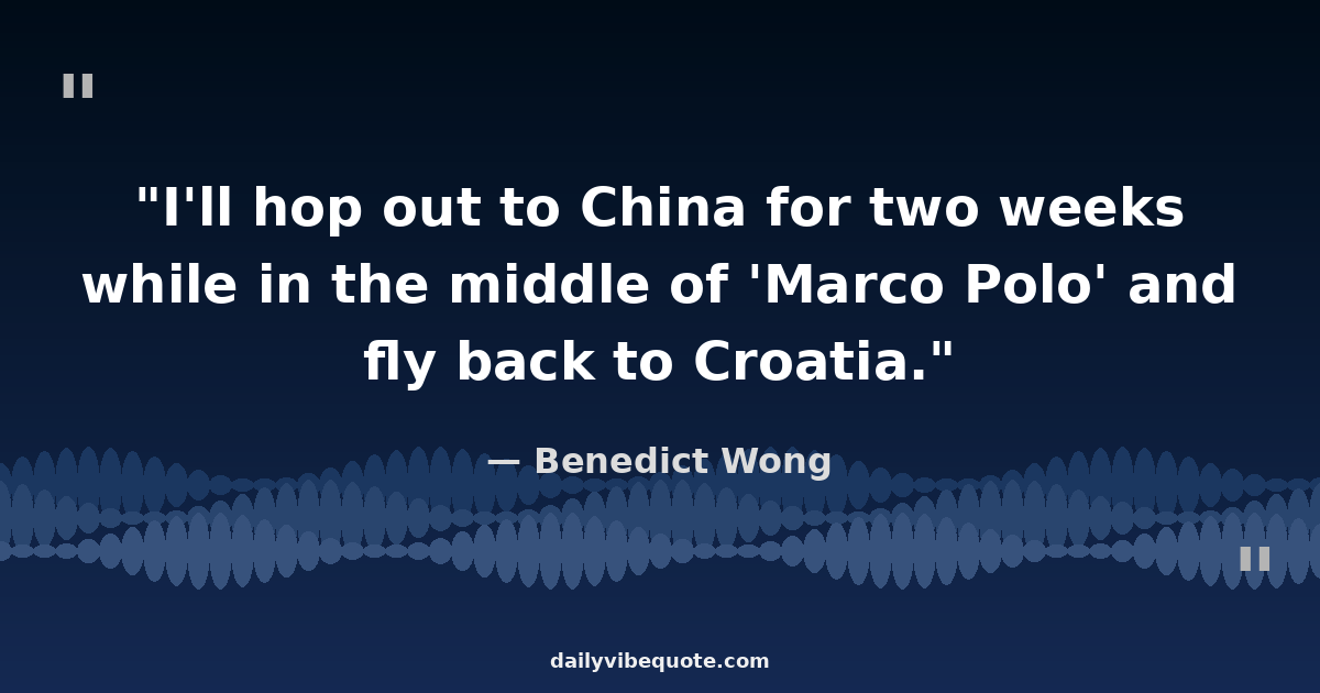 "I'll hop out to China for two weeks while in the middle of 'Marco Polo' and fly back to Croatia."