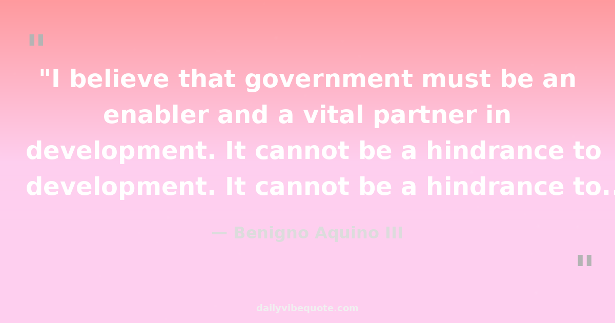 "I believe that government must be an enabler and a vital partner in development. It cannot be a hindrance to progress, much less an instrument of oppression."