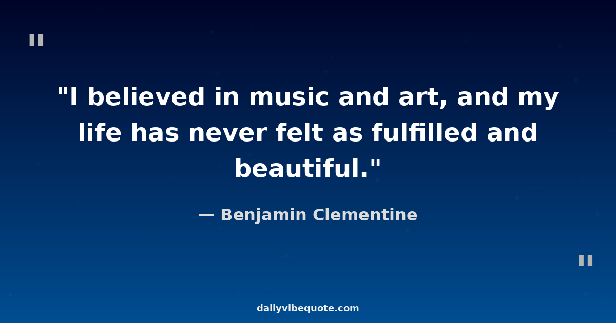 "I believed in music and art, and my life has never felt as fulfilled and beautiful."