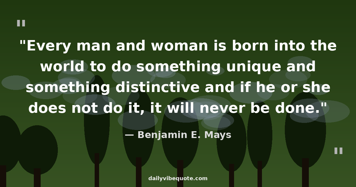 "Every man and woman is born into the world to do something unique and something distinctive and if he or she does not do it, it will never be done."