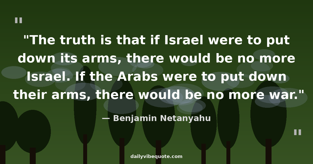 "The truth is that if Israel were to put down its arms, there would be no more Israel. If the Arabs were to put down their arms, there would be no more war."