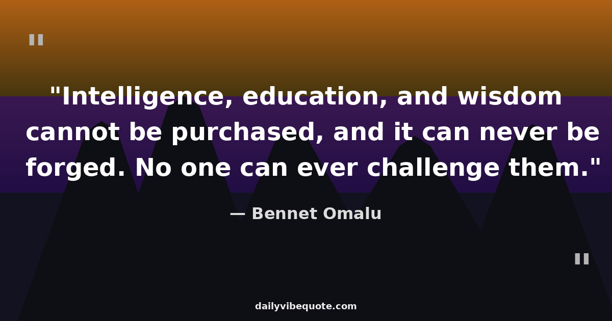 "Intelligence, education, and wisdom cannot be purchased, and it can never be forged. No one can ever challenge them."