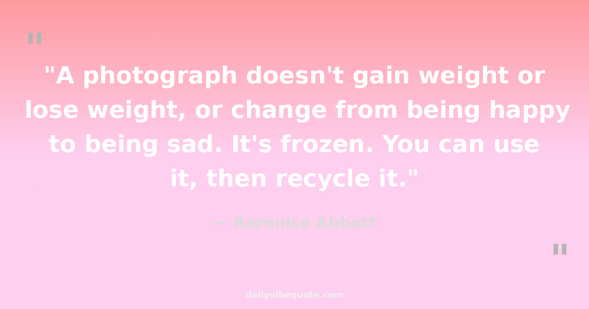 "A photograph doesn't gain weight or lose weight, or change from being happy to being sad. It's frozen. You can use it, then recycle it."