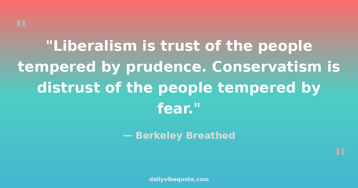 "Liberalism is trust of the people tempered by prudence. Conservatism is distrust of the people tempered by fear."