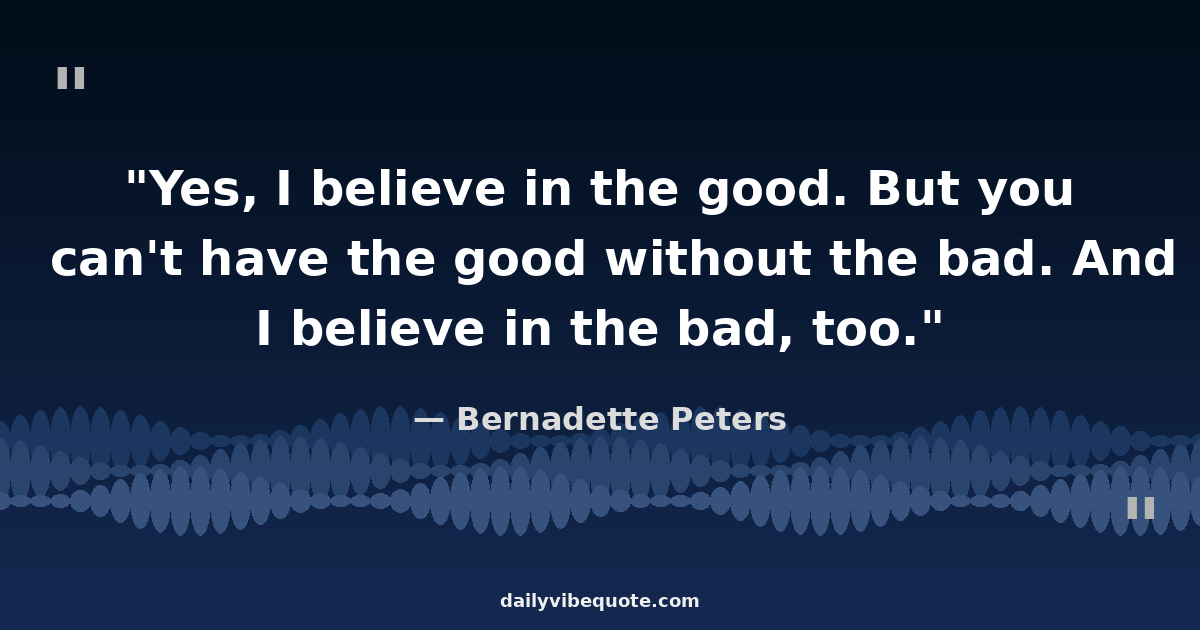 "Yes, I believe in the good. But you can't have the good without the bad. And I believe in the bad, too."