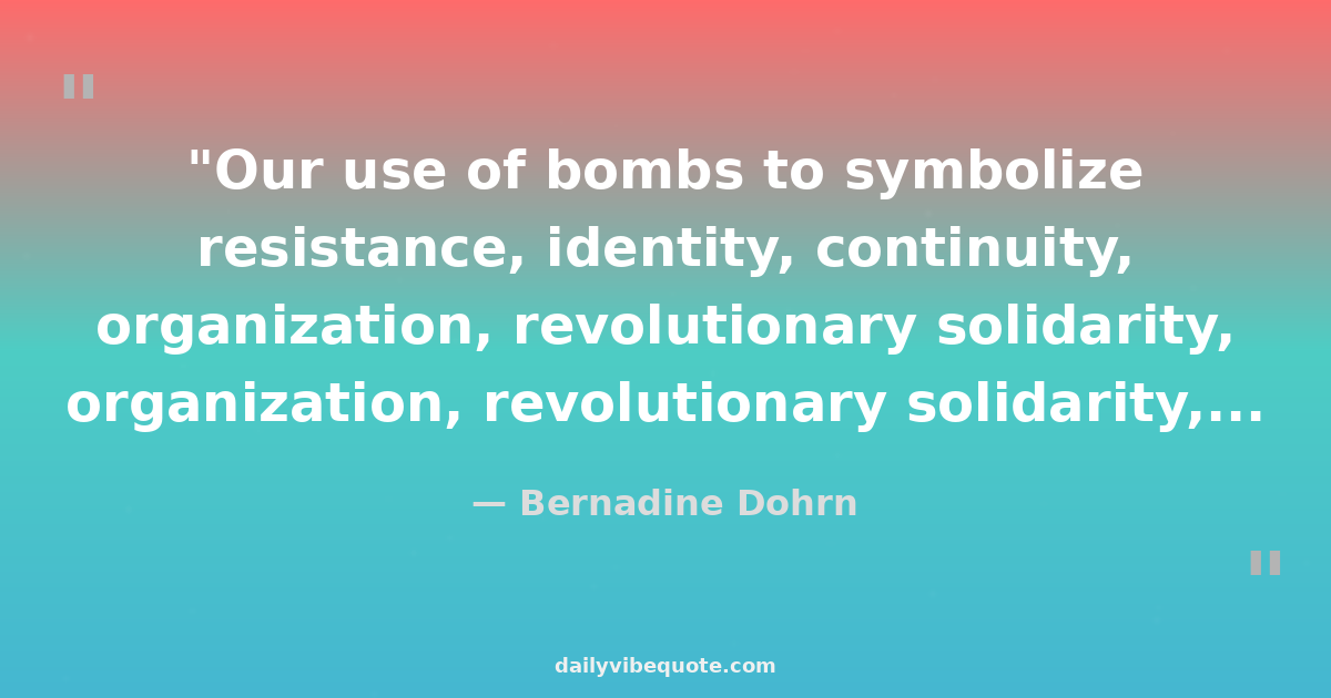 "Our use of bombs to symbolize resistance, identity, continuity, organization, revolutionary solidarity, and the antithesis of state power and control is now possible."