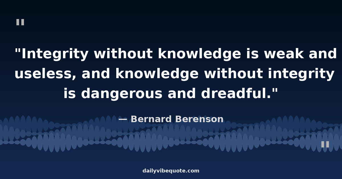"Integrity without knowledge is weak and useless, and knowledge without integrity is dangerous and dreadful."