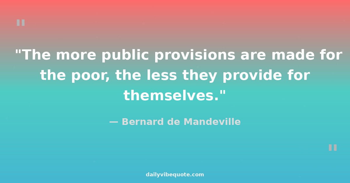 "The more public provisions are made for the poor, the less they provide for themselves."