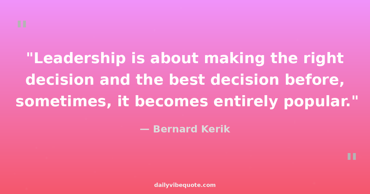 "Leadership is about making the right decision and the best decision before, sometimes, it becomes entirely popular."
