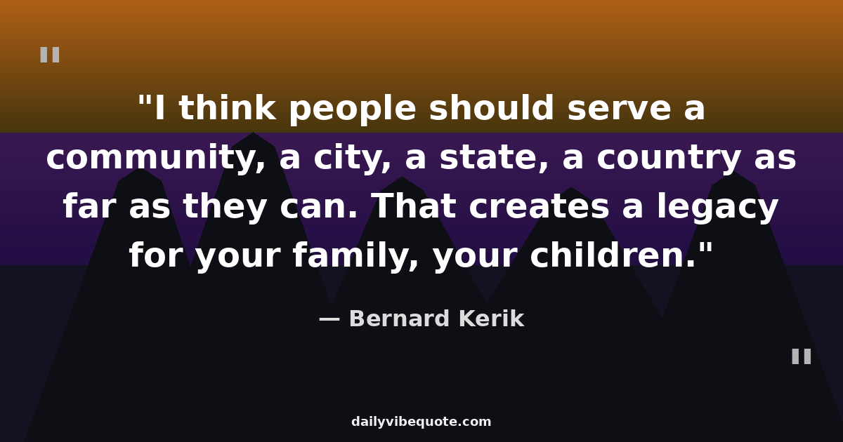 "I think people should serve a community, a city, a state, a country as far as they can. That creates a legacy for your family, your children."