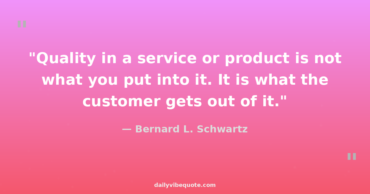 "Quality in a service or product is not what you put into it. It is what the customer gets out of it."