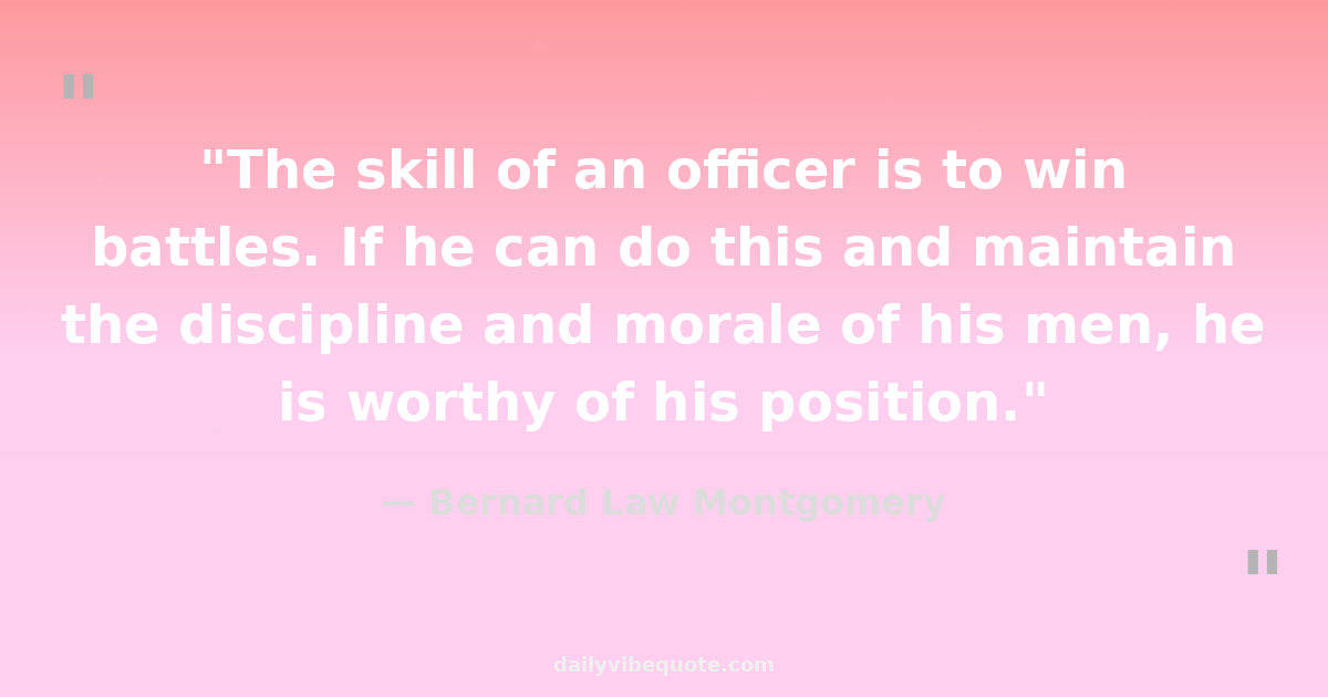 "The skill of an officer is to win battles. If he can do this and maintain the discipline and morale of his men, he is worthy of his position."