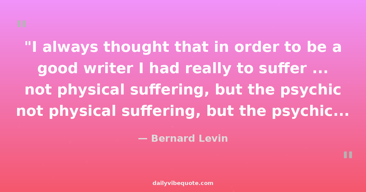 "I always thought that in order to be a good writer I had really to suffer ... not physical suffering, but the psychic suffering, the suffering of frustration."
