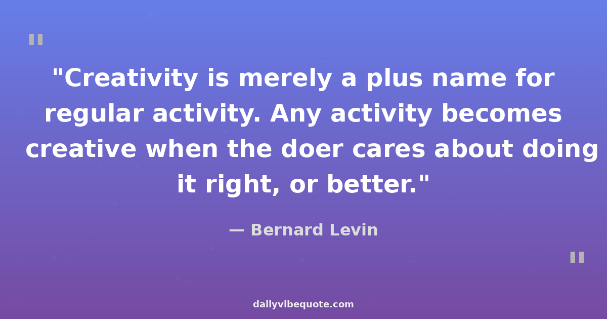 "Creativity is merely a plus name for regular activity. Any activity becomes creative when the doer cares about doing it right, or better."