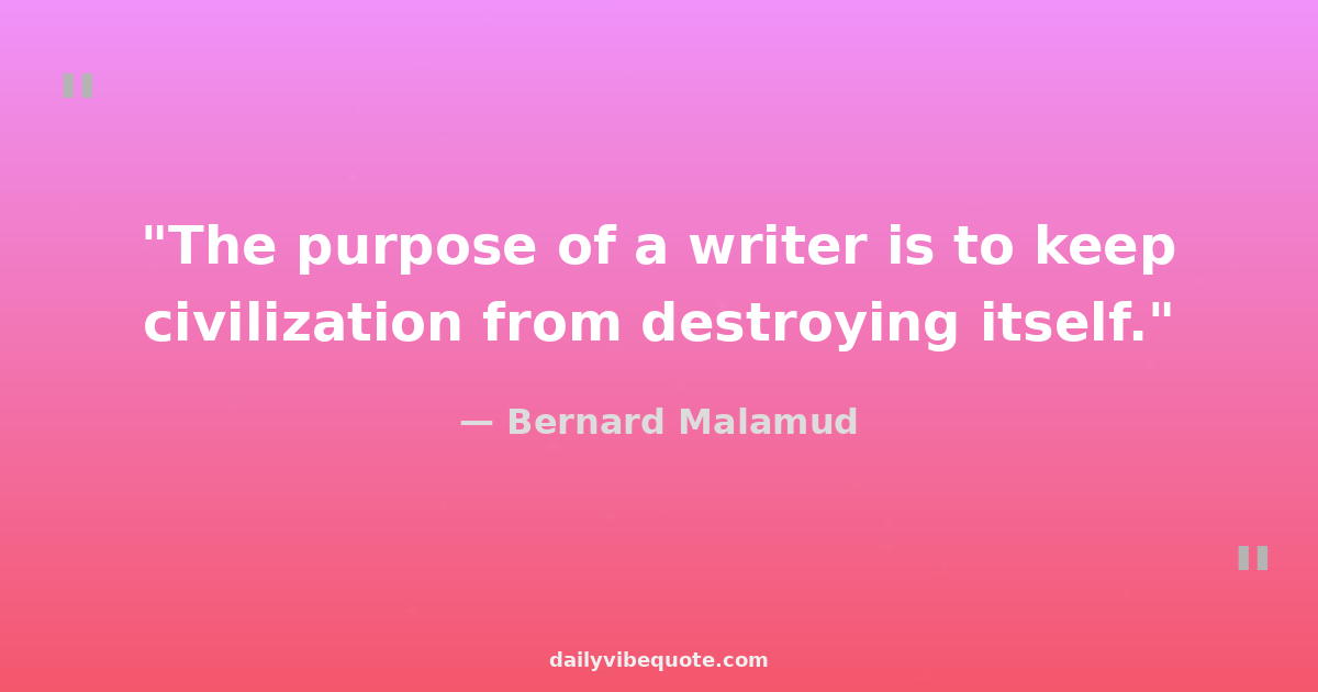 "The purpose of a writer is to keep civilization from destroying itself."