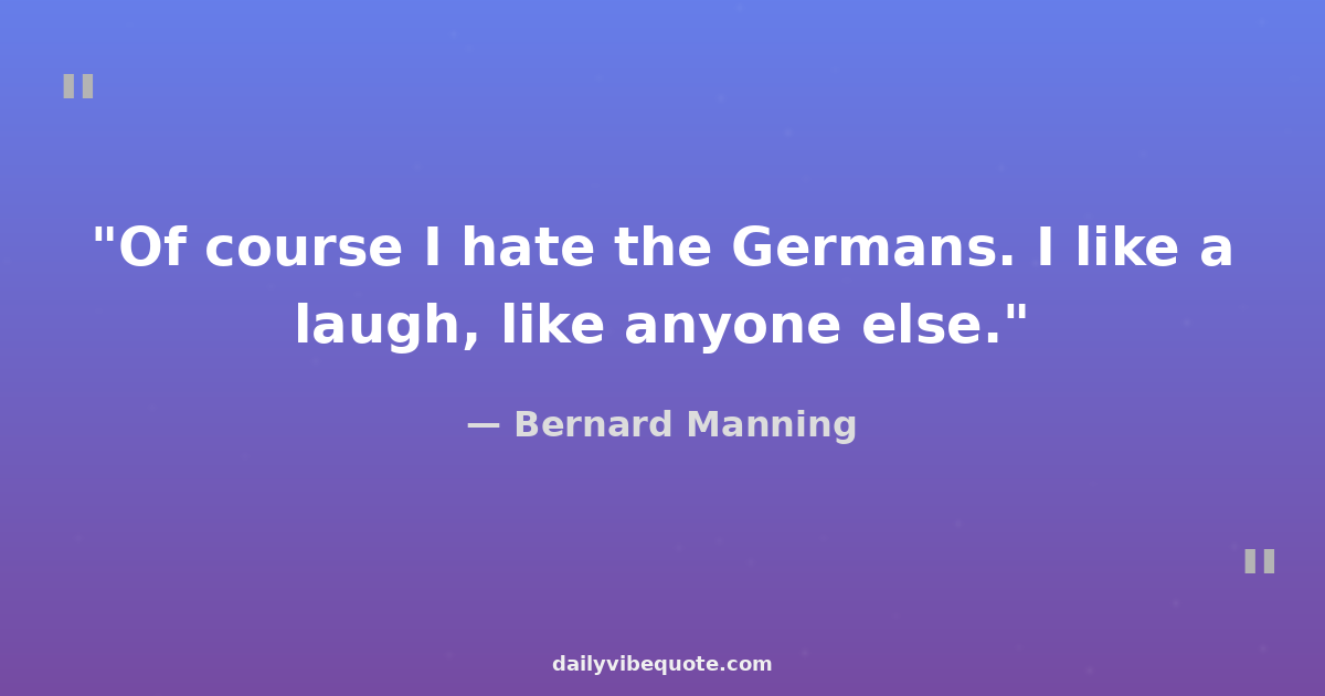"Of course I hate the Germans. I like a laugh, like anyone else."