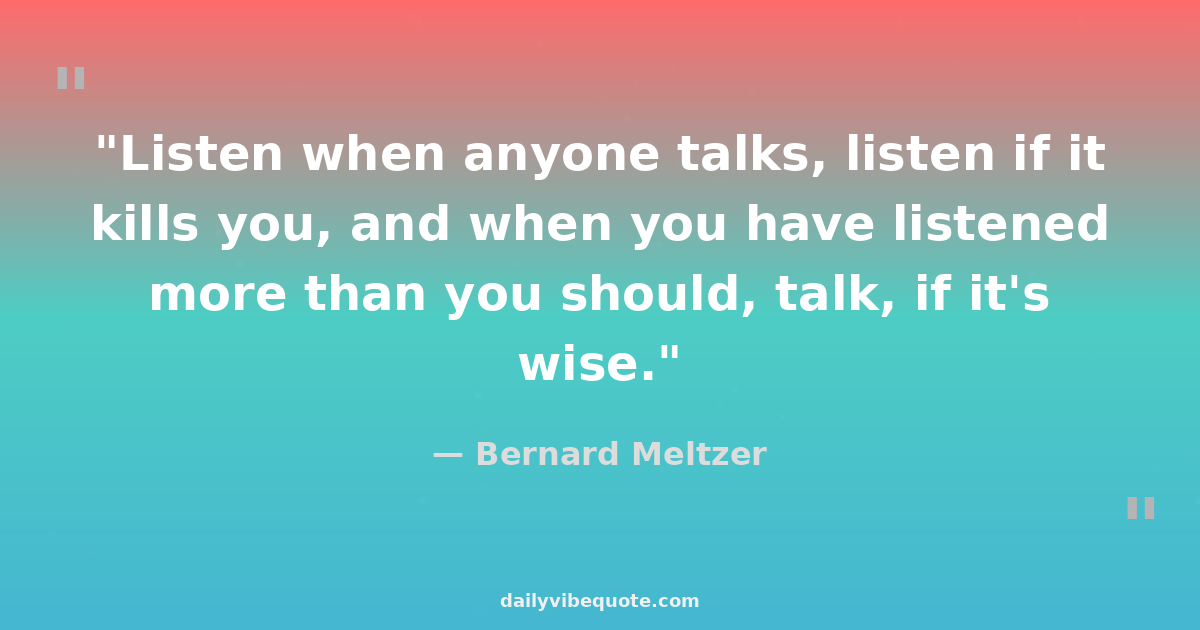 "Listen when anyone talks, listen if it kills you, and when you have listened more than you should, talk, if it's wise."