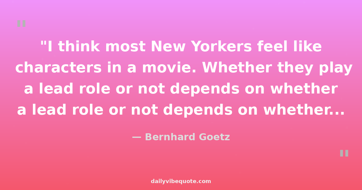 "I think most New Yorkers feel like characters in a movie. Whether they play a lead role or not depends on whether they can afford to live in the neighborhood."