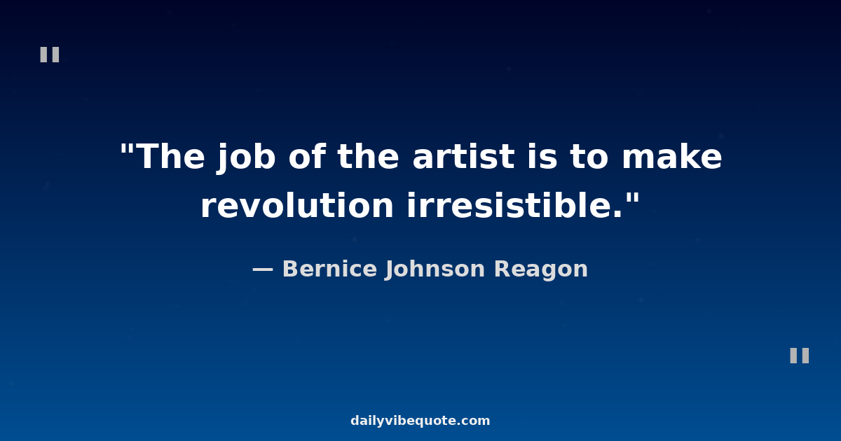 Bernice Johnson Reagon is an American historian, singer, composer, scholar, and social activist. She is best known as the founder of the a cappella ensemble Sweet Honey in the Rock, a Grammy Award-winning group that blends African American spirituals, blues, folk, gospel music, and more. Reagon played a significant role in the Civil Rights Movement as a member of the Student Nonviolent Coordinating Committee (SNCC) and fought for social justice through her music and activism. She has also been a professor at various universities and contributed greatly to African American cultural studies.