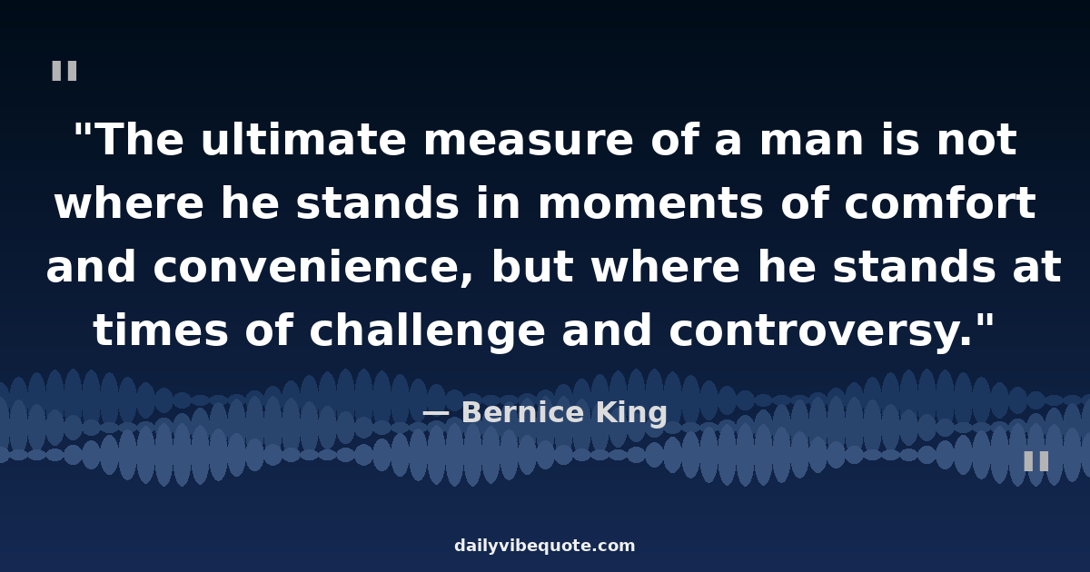 "The ultimate measure of a man is not where he stands in moments of comfort and convenience, but where he stands at times of challenge and controversy."
