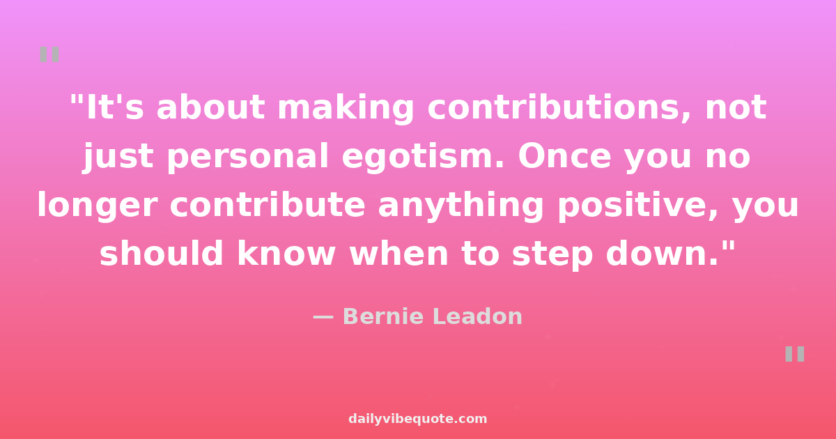 "It's about making contributions, not just personal egotism. Once you no longer contribute anything positive, you should know when to step down."