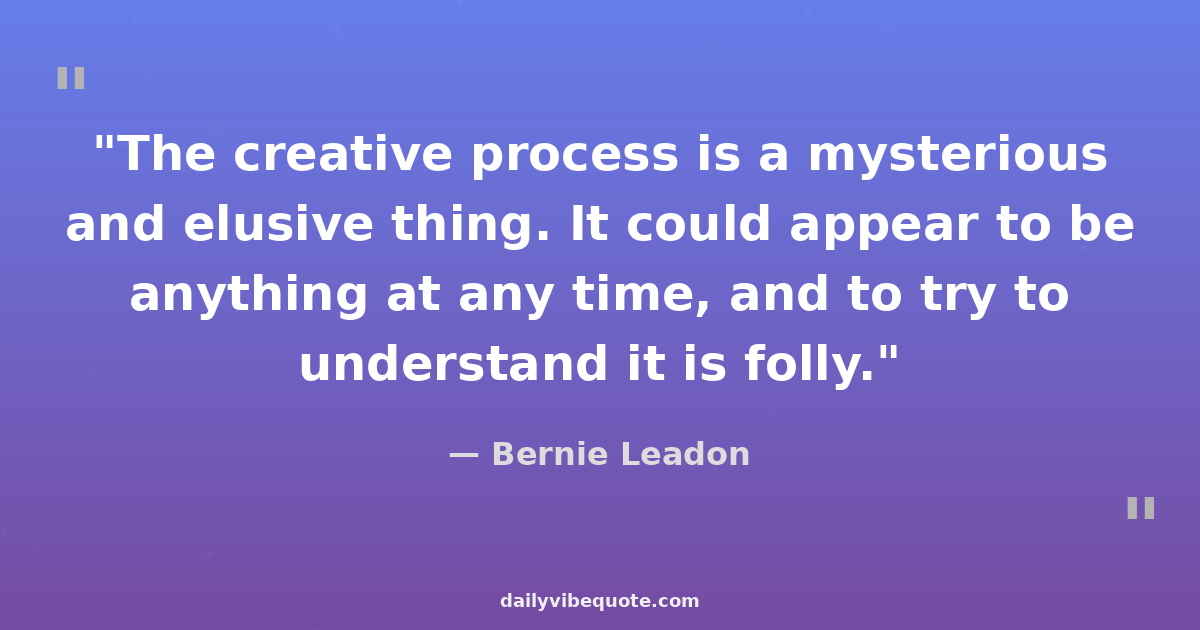 "The creative process is a mysterious and elusive thing. It could appear to be anything at any time, and to try to understand it is folly."