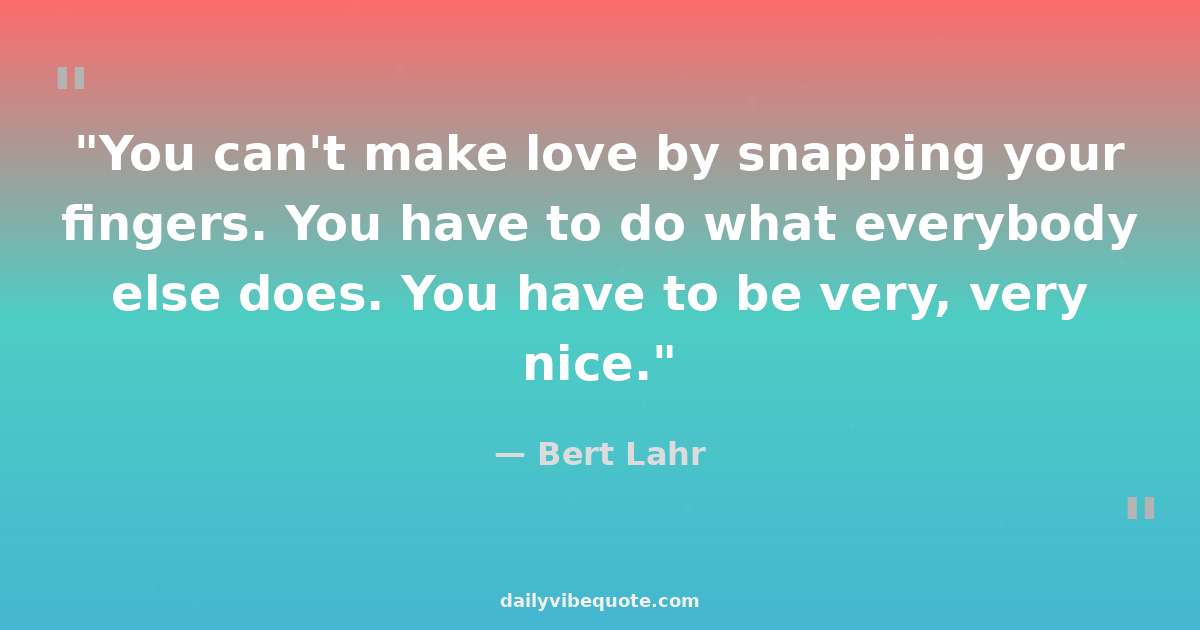 "You can't make love by snapping your fingers. You have to do what everybody else does. You have to be very, very nice."