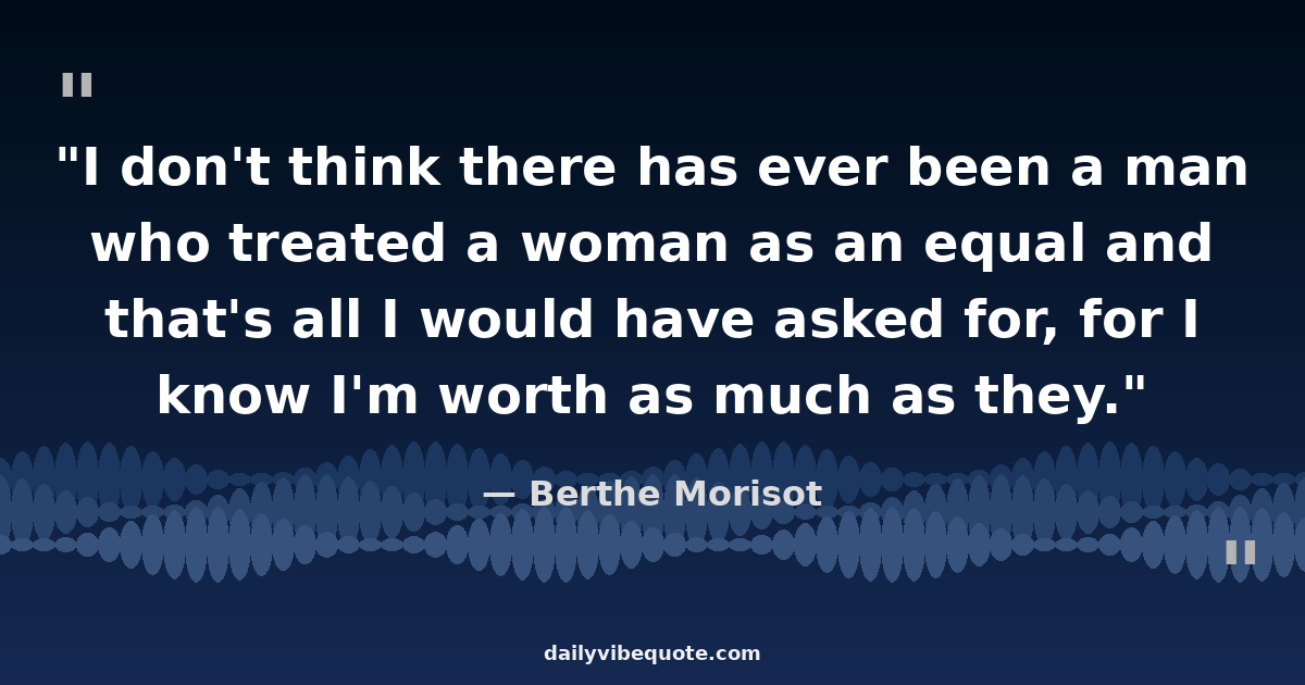 "I don't think there has ever been a man who treated a woman as an equal and that's all I would have asked for, for I know I'm worth as much as they."