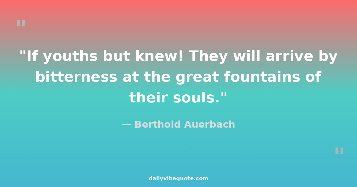"If youths but knew! They will arrive by bitterness at the great fountains of their souls."