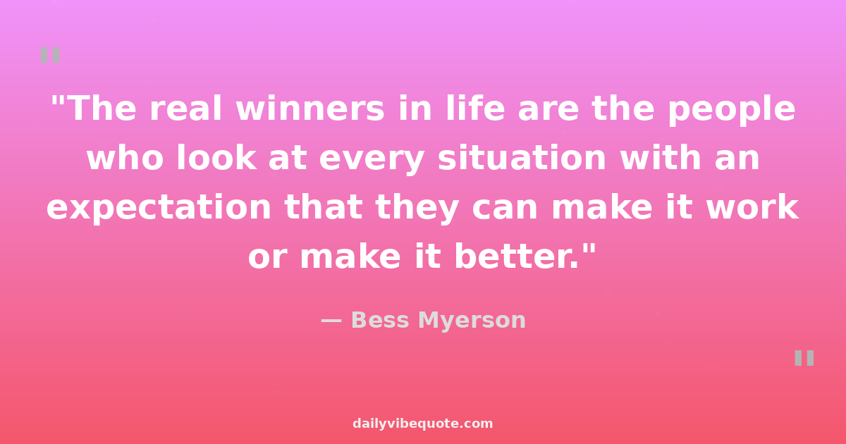 "The real winners in life are the people who look at every situation with an expectation that they can make it work or make it better."