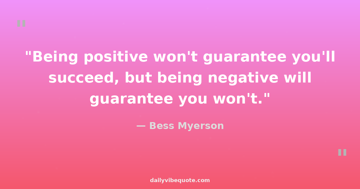 "Being positive won't guarantee you'll succeed, but being negative will guarantee you won't."