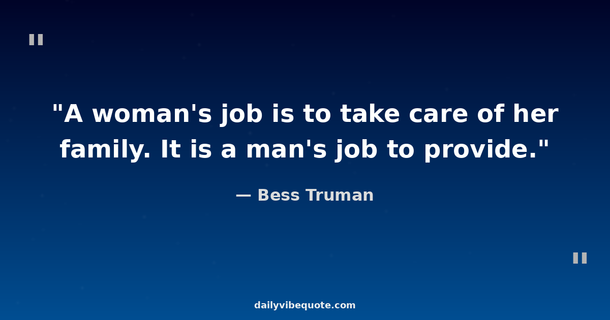 "A woman's job is to take care of her family. It is a man's job to provide."